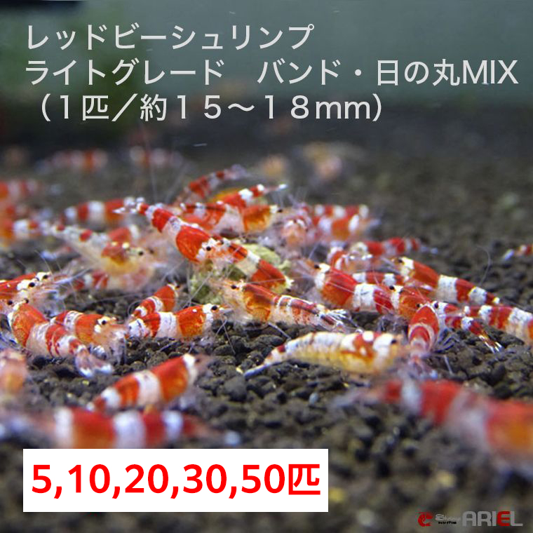 【レッドビーシュリンプ ライトグレード バンド・日の丸MIX(13〜18mm前後)】5・10・20・30・50匹 死着補償サービス+1匹 エビ 蝦 アクアリウム 水草 熱帯魚 shrimp aquarium water plants