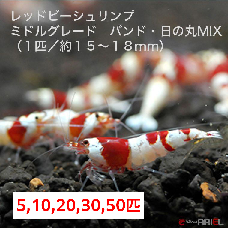 【レッドビーシュリンプ ミドルグレード バンド・日の丸MIX(15〜18mm前後)】5・10・20・30・50匹 死着補償サービス+1匹 エビ 蝦 アクアリウム 水草 熱帯魚 shrimp aquarium water plants